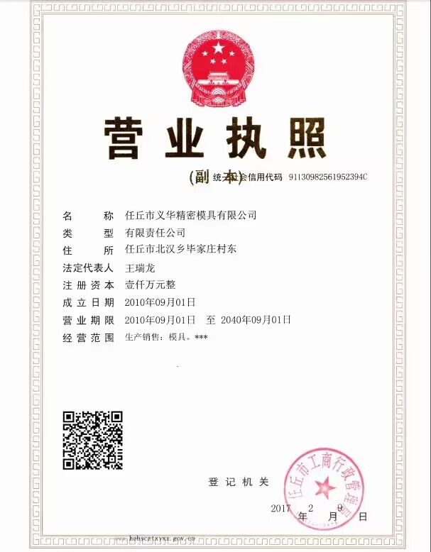 Copyright ? 2018-2021 任丘市義華精密模具有限公司 All Rights Reserved. 地址:河北省任丘市北漢工業區 備案號:冀ICP備15021884號-2 網站地圖